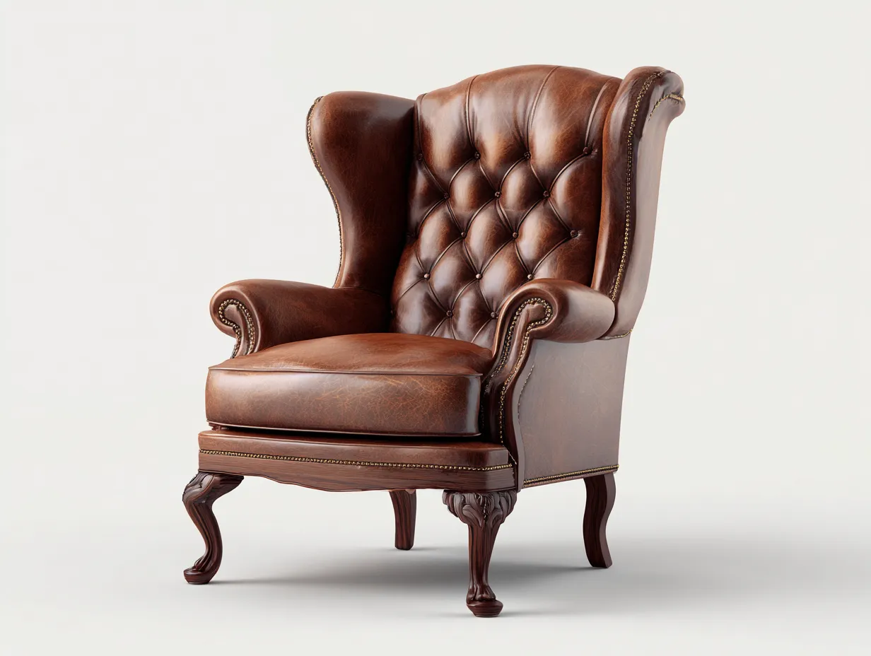 Poltrona a orecchioni-pelle-legno-84x90x110 cm-Marrone-Stile classico