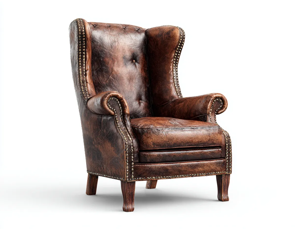 Poltrona a orecchioni-pelle-legno-82x88x108 cm-Marrone-Stile classico